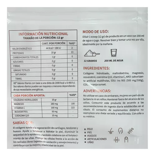 Este producto es un suplemento dietario y no reemplaza una alimentación equilibrada. Consultar con un profesional de la salud antes de su consumo, especialmente en caso de embarazo, lactancia o condiciones médicas preexistentes. Mantener en un lugar fresco y seco, fuera del alcance de los niños.