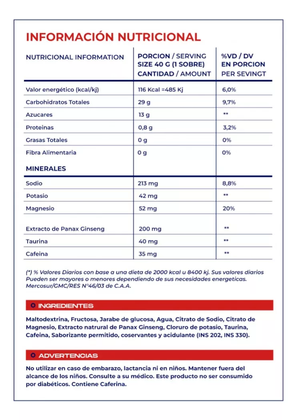 no consumir en caso de embarazo lactancia o en niños mantener fuera del alcance de los niños consultar con su médico no apto para diabéticos contiene cafeína