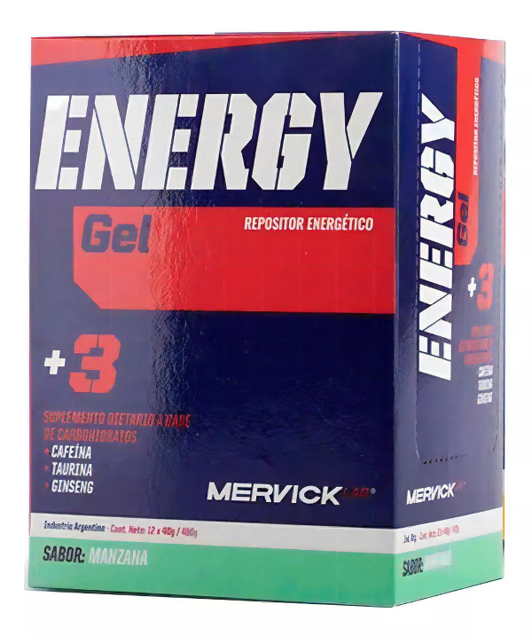 Aumenta tu energía y concentración con Gel Energy Mervick, una combinación de carbohidratos, cafeína y extracto de ginseng que te proporciona un impulso instantáneo en entrenamientos y competencias exigentes.