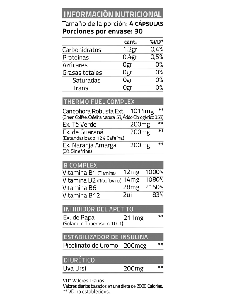 THERMO FUEL (120 caps.) de Star Nutrition es un potente termogénico diseñado para potenciar la quema de grasa, mejorar el metabolismo y aumentar la energía. Su fórmula avanzada combina ingredientes clave para favorecer la pérdida de peso y mejorar el rendimiento en entrenamientos intensos.