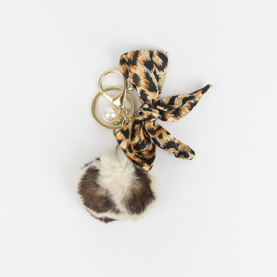 ✨ Un detalle delicado para sumar a tu cartera, mochila o llaves. 🤍 Su diseño con pañuelo estampado, perlita y pompon aporta un toque femenino y con personalidad. 🎀 Disponible con pompon en gris y marrón.