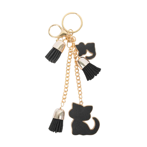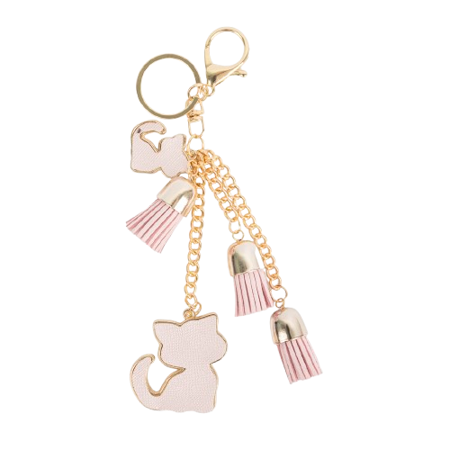 ✨ Un detalle original para sumar a tu cartera, mochila o llaves. 🤍 Su diseño de gatito con cadenas y borlas le aporta un toque delicado, femenino y con personalidad. 🎀 Disponible en negro, beige y rosa.